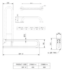 Nyma Care Hinged Lift & Lock Support Rail – 800mm – Stainless Steel – White – 211880/WH