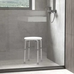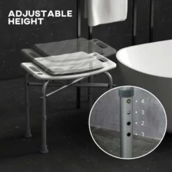 HOMCOM Adjustable Non-Slip Shower And Bath Stool For Elderly – Cream White – 72-0011