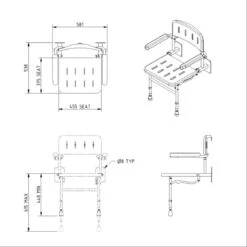 Nyma Pro Wall Mounted Shower Seat With Back, Arms & Legs – White – 130203/WH