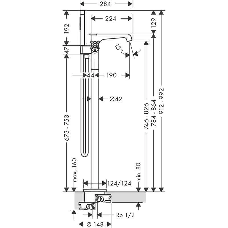 The Axor Citterio E bath filler includes a mixer with 190mm long spout and comes with baton hand shower, shower hose and shower holder. The hand shower is designed to run in 2 spray modes; Rain mode that effectively rinse shampoo out of your hair, and Mono mode for a targeted and soothing relaxing shower. This bath filler is designed for floor-standing installation and comes with 5 years guarantee from manufacturer.