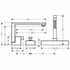 - Consists of: 3-hole rim-mounted single lever bath mixer, baton hand shower, shower holder