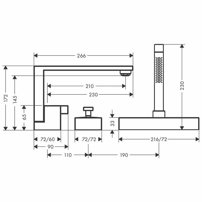 Axor Edge 3-Hole Rim Mounted Bath Mixer – Polished Black Chrome – 46430330