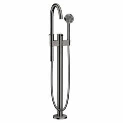 - Consists of: Floor-standing single lever bath mixer, hand shower, shower hose, shower holder