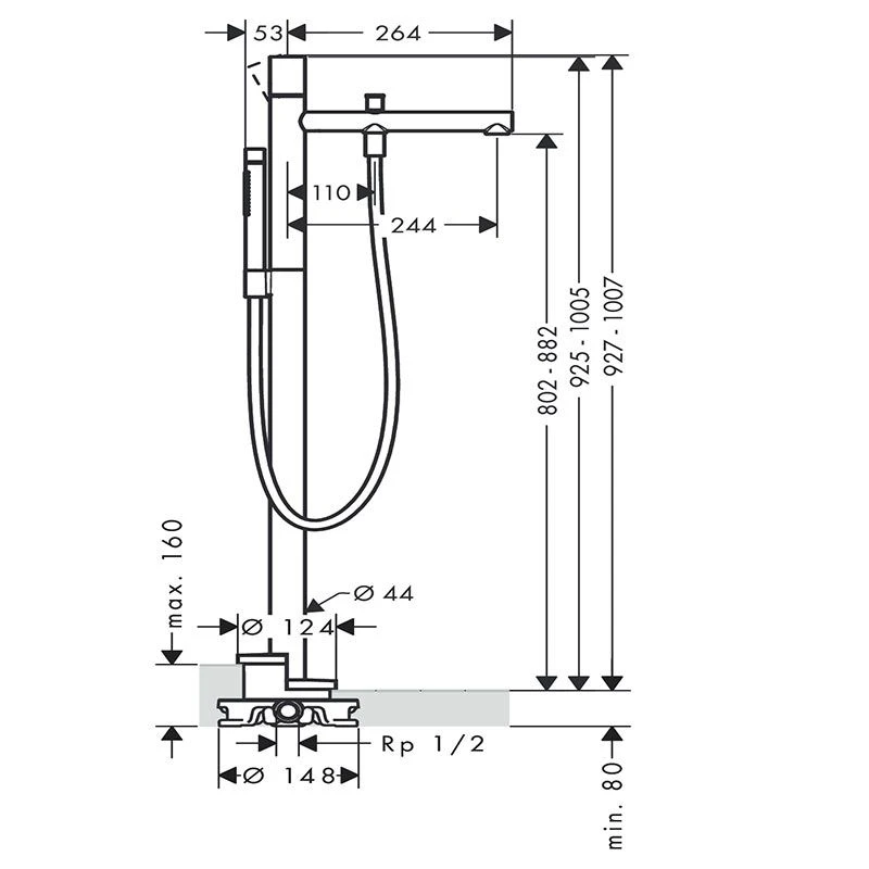 AXOR Uno Single Lever Bath Mixer Floor Standing With Zero Handle – Brushed Nickel – Details