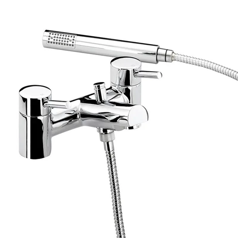 Check out this Prism bath/shower mixer tap with lever handles for your bathroom and ensuite. The dual control means you can easily and smoothly change the water flow and temperature. Constructed from brass and chrome plated, this bath/shower mixer tap is strong, durable and will last for years to come. Featuring a round and curved profile and complete with shower hose and rub clean handset for convenience and ease. If you are looking for a modern and elegantly designed mixer tap for your bathroom and ensuite, this is the one for you.