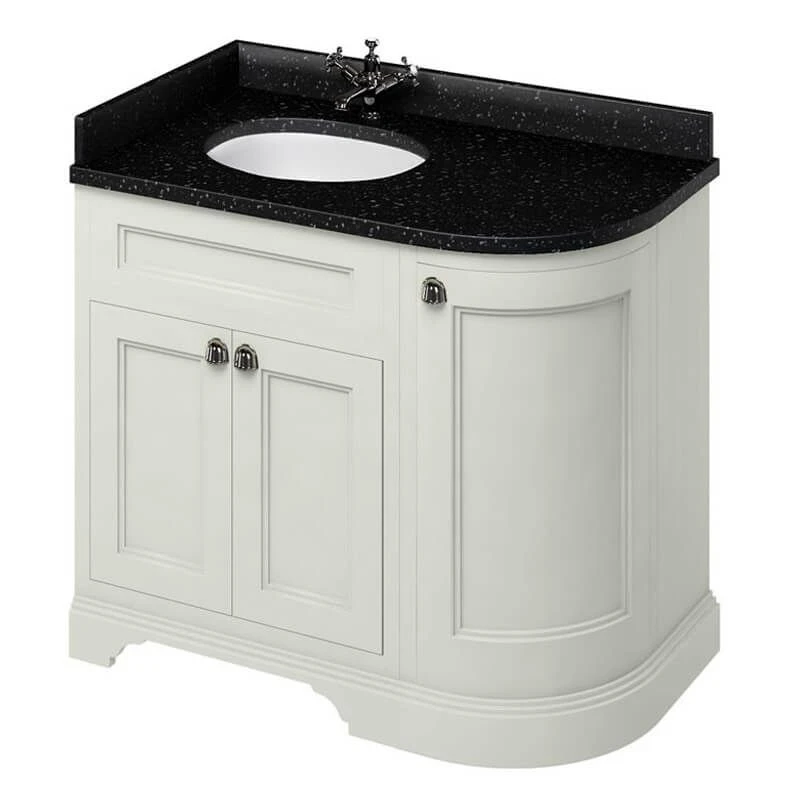 Burlington Freestanding 1000mm Curved Three Door Left Hand Vanity Unit – Sand – Details