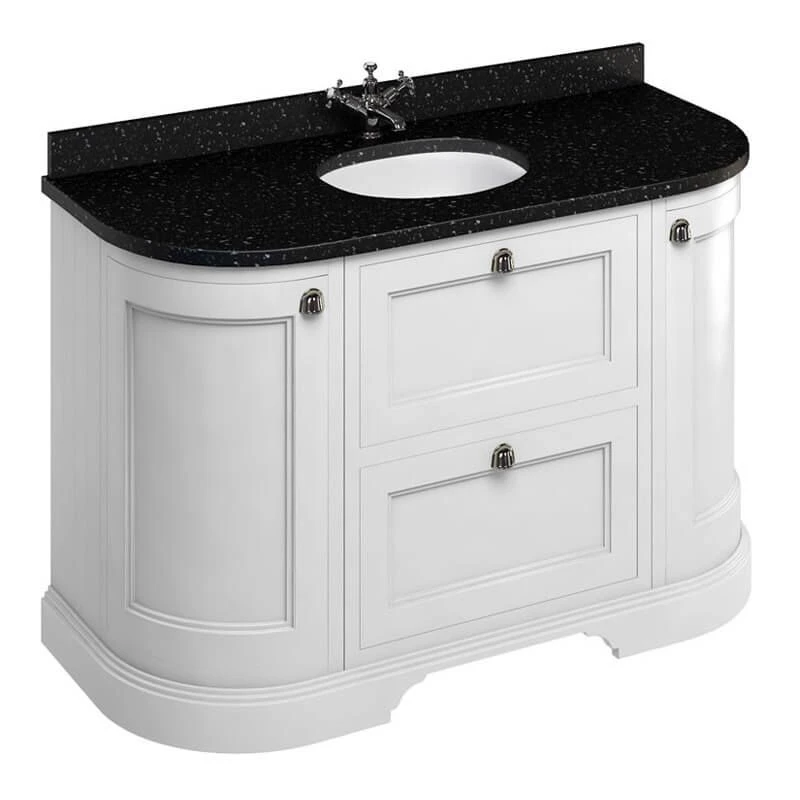 Burlington Freestanding 1340mm Curved Two Door & Two Drawer Vanity Unit – Matt White – Details