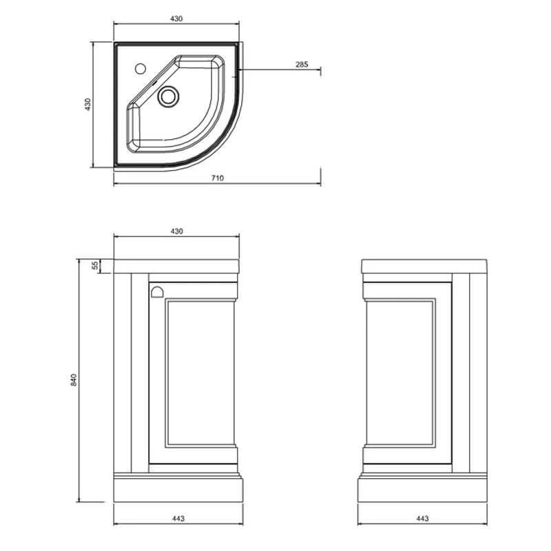 Burlington Freestanding Corner 430mm One Door Vanity Unit – Grey – FC7G Details