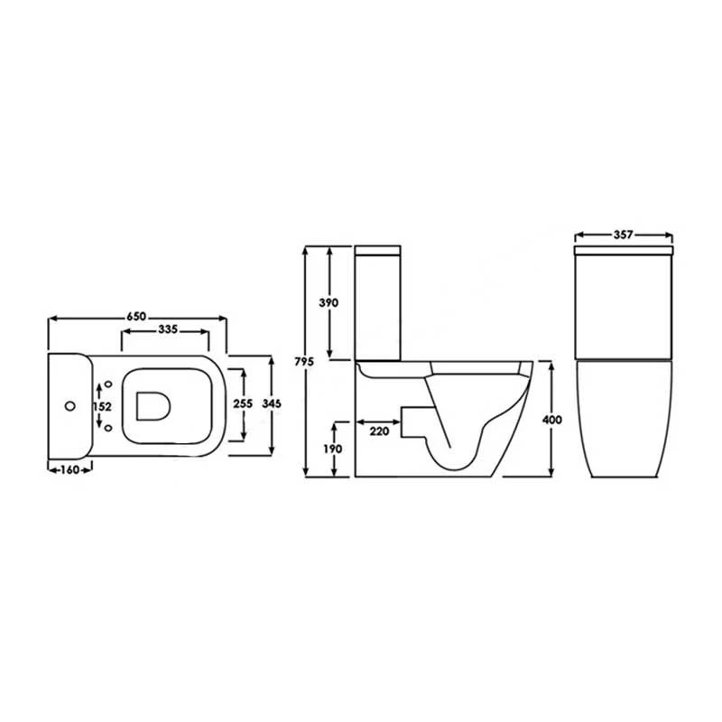 - Cistern Width – 357mm