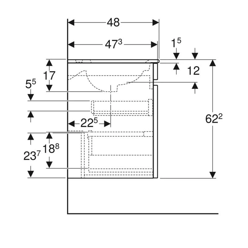This 501.918.01.1 Geberit Renova Plan 1300mm Double Slim Rim Vanity Basin & Basin Unit is a wall-hung double basin unit that comes with 2 drawers and 2 internal drawers. This is a fantastic solution if planning a his and hers bathroom, or a busy family bathroom. The sleek, soft close drawers can be opened thanks to a specially-designed recess, rather than obtrusive handles.