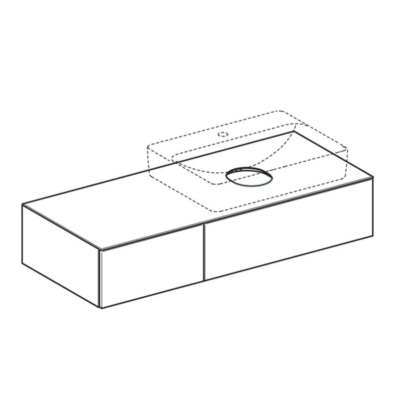 This 501.174.00.1 Geberit VariForm cabinet for lay-on washbasins comes pre-assembled with two drawers, shelf surface and trap. Suitable for all VariForm lay-on washbasins and finished in a stylish Dark Hickory – this is a great addition for storage in any bathroom.