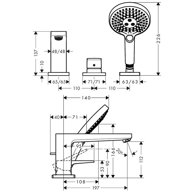 hansgrohe Metropol 3-Hole Rim-Mounted Single Lever Bath Mixer With Loop Handle – 74551000 – Details