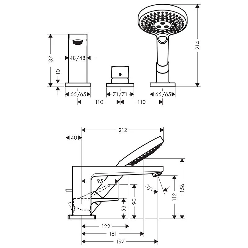 hansgrohe Metropol 3-Hole Rim-Mounted Single Lever Bath Mixer With Loop Handle And Secuflex – 74550000 – Details
