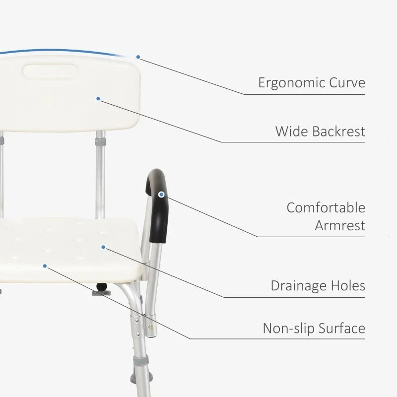 HOMCOM Bath Shower Chair with Adjustable Back and Armrest for Mobility – White – 72-0007