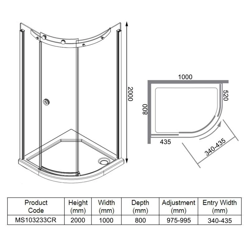 Merlyn 10 Series 1 Door Offset Quadrant Right Hand with Merlyn MStone Tray 1000 x 800mm – MS103233CR