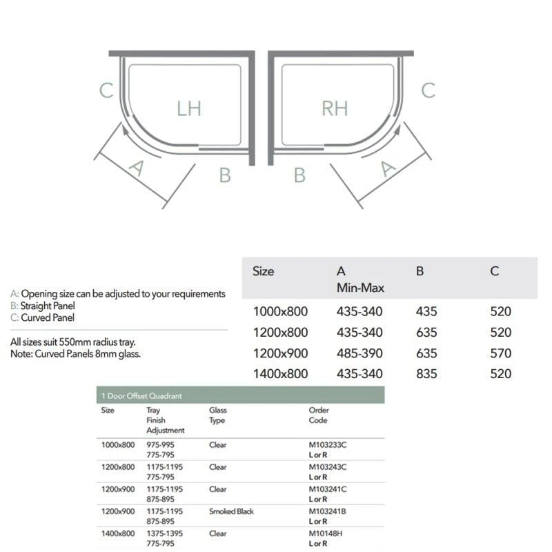 Merlyn 10 Series 1 Door Offset Quadrant Shower Enclosure Left Hand 1200 x 900mm – M103241CL