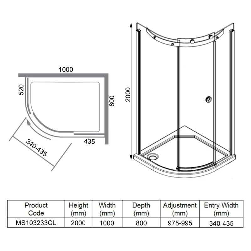 Merlyn 10 Series 1 Door Offset Quadrant Shower Enclosure Left Hand with Tray 1000 x 800mm – MS103233CL