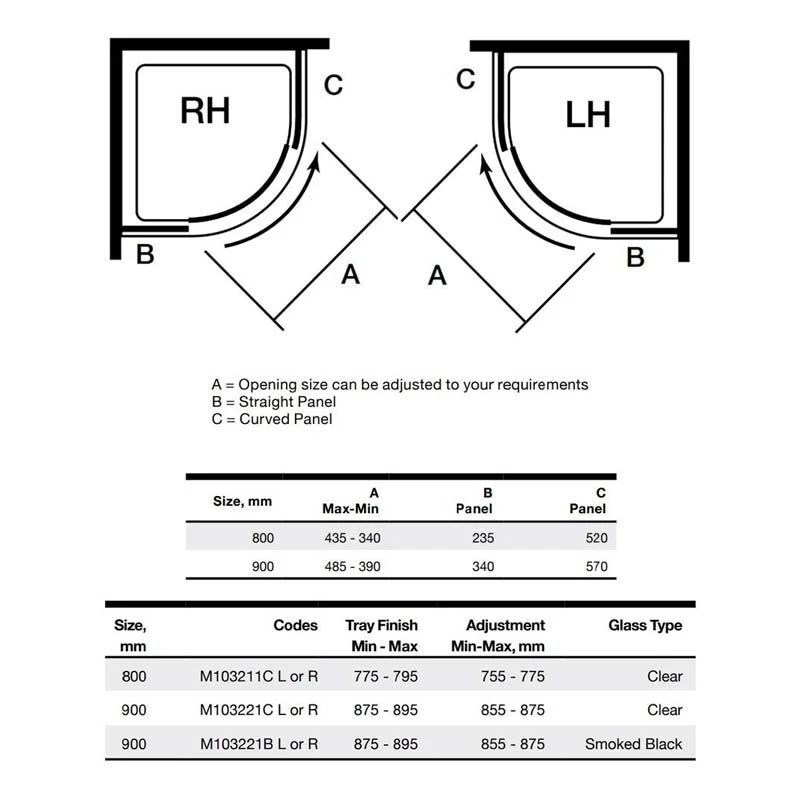 Merlyn 10 Series 1 Door Quadrant Shower Enclosure Right Hand 800mm – M103211CR