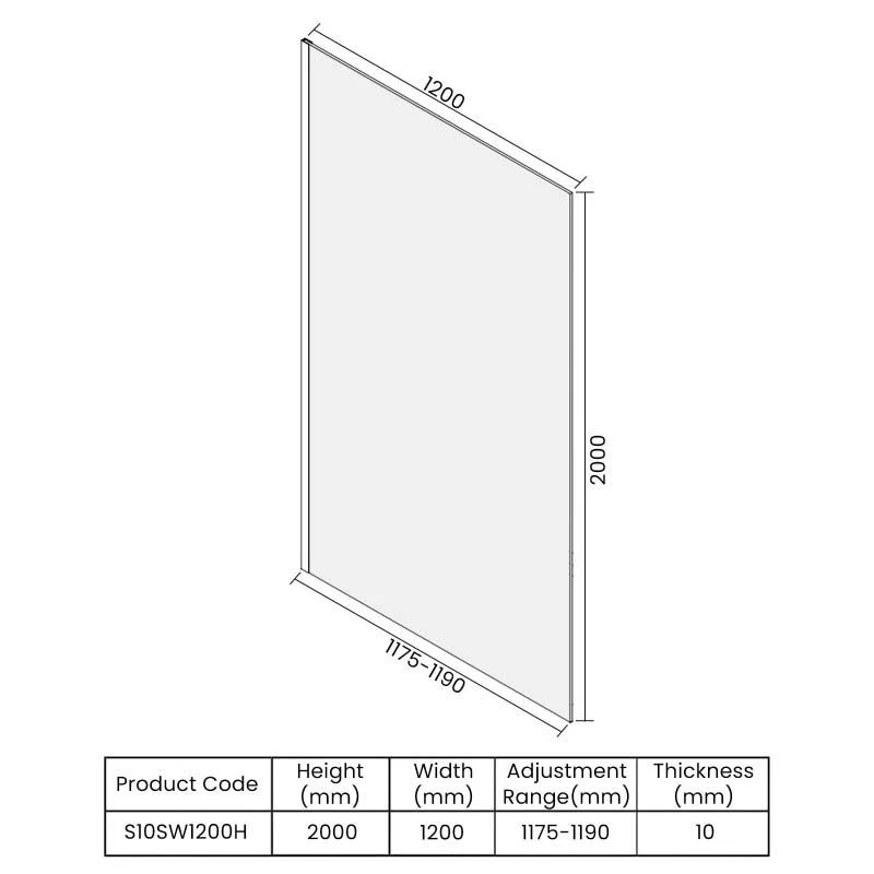 Merlyn 10 Series Shower Wall including Wall Profile & Stabilising Bar 1200mm – S10SW1200H