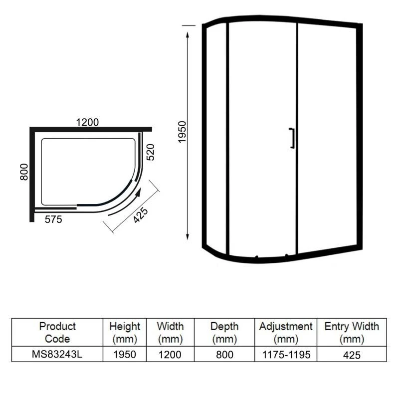 Merlyn 8 Series 1 Door Offset Quadrant Left Hand Including Merlyn MStone Tray 1200 x 800mm – MS83243L