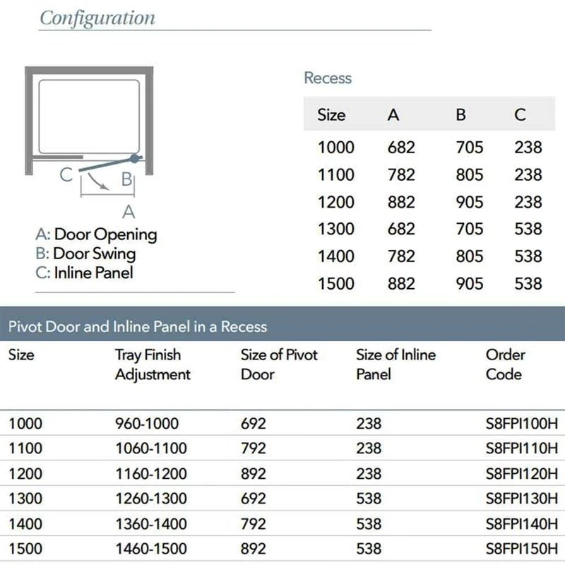 Merlyn 8 Series Frameless Pivot Shower Door & Inline Panel 1200mm with MStone Tray – S8FPI1203HB