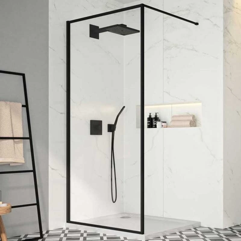 Merlyn Black Framed Showerwall Wetroom Panel is a great focal point in any bathroom. The Anodised aluminium matte black finished panel is extremely durable thanks to the toughened safety clear glass construction. The finishing of the unit adds a classy and minimalist look that will perfectly blend with all styles. This unit is suited to recess or corner installation and includes a Bracing bar as standard.