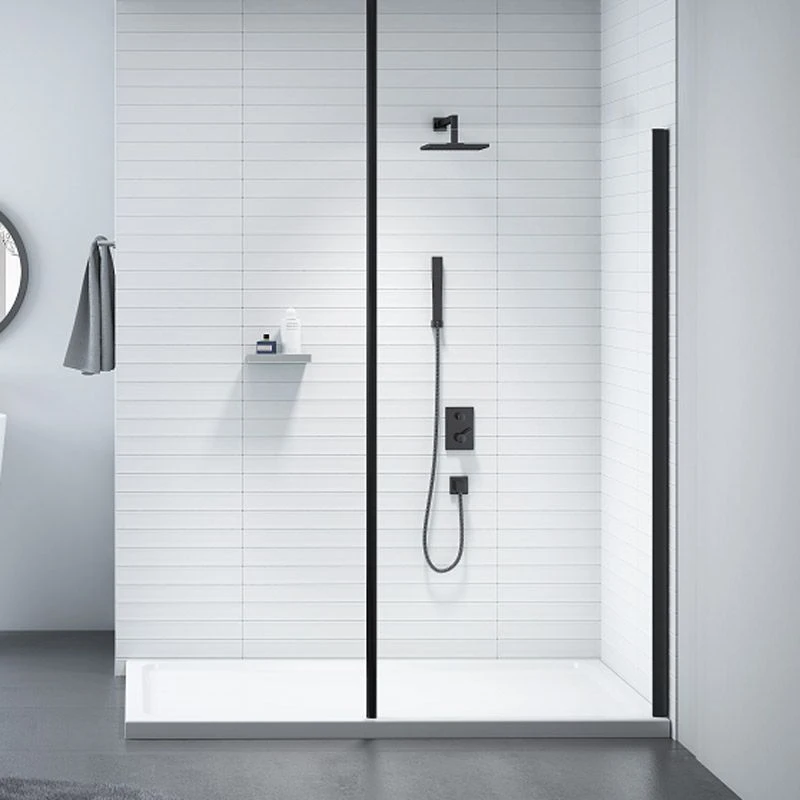 The Merlyn Black Showerwall Wetroom Panel is a sleek and stylish wetroom screen that comes in various sizes. It features 8mm toughened glass, a matt black profile, and a minimalist frameless design. The showerwall is reversible and includes a stabilising bar. It is also protected by Mershield Stayclear, which ensures the glass maintains its sparkle for years to come.