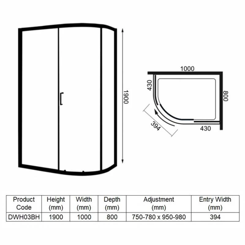 Merlyn Ionic Essence Framed 1 Door Offset Quadrant Shower Enclosure 1000x800mm – DWH03BH