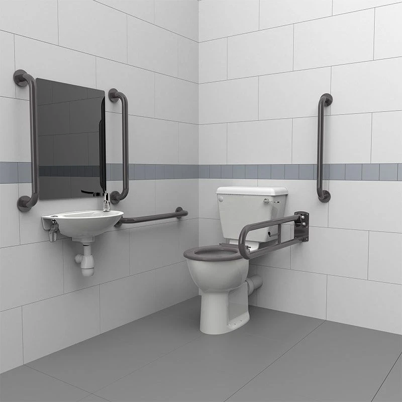 Nyma Care Close Coupled Doc M Pack For Toilet With Lockable Cistern Lid & Concealed Fixings – Steel – Grey – DM200KC/LC/GY