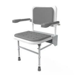 Nyma Care Premium Wall Mounted Shower Padded Seat With Legs, Arms & Back – Grey – SB-081/GY