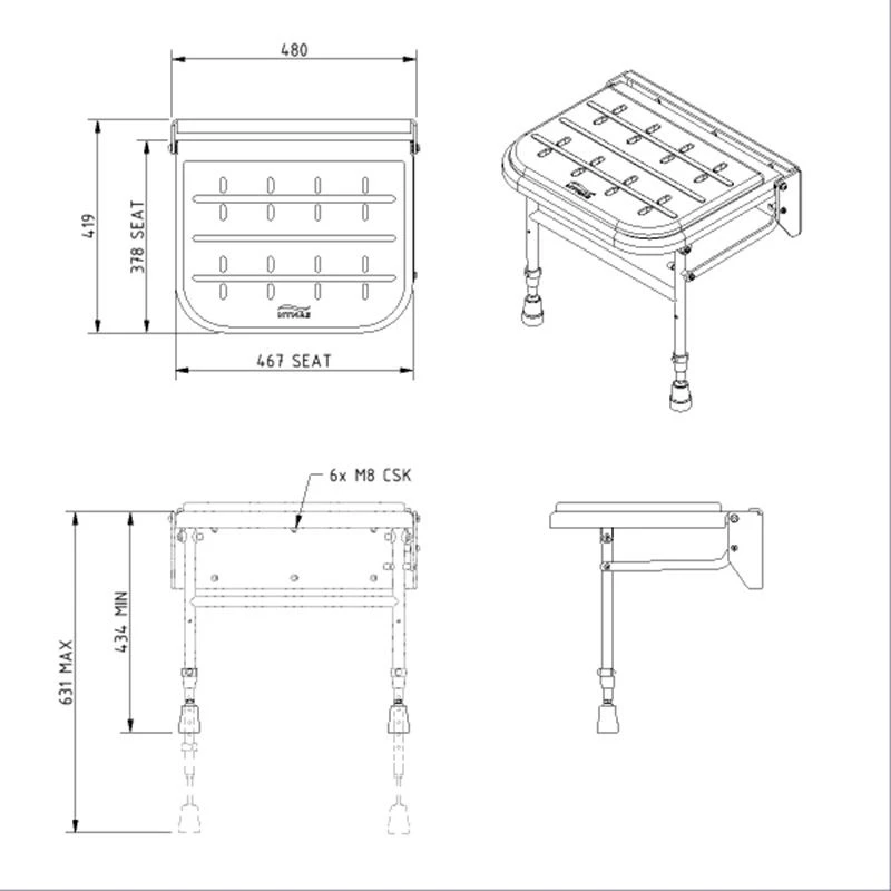 Nyma Care Premium Wall Mounted Shower Seat With Legs – White – SB-070/WH