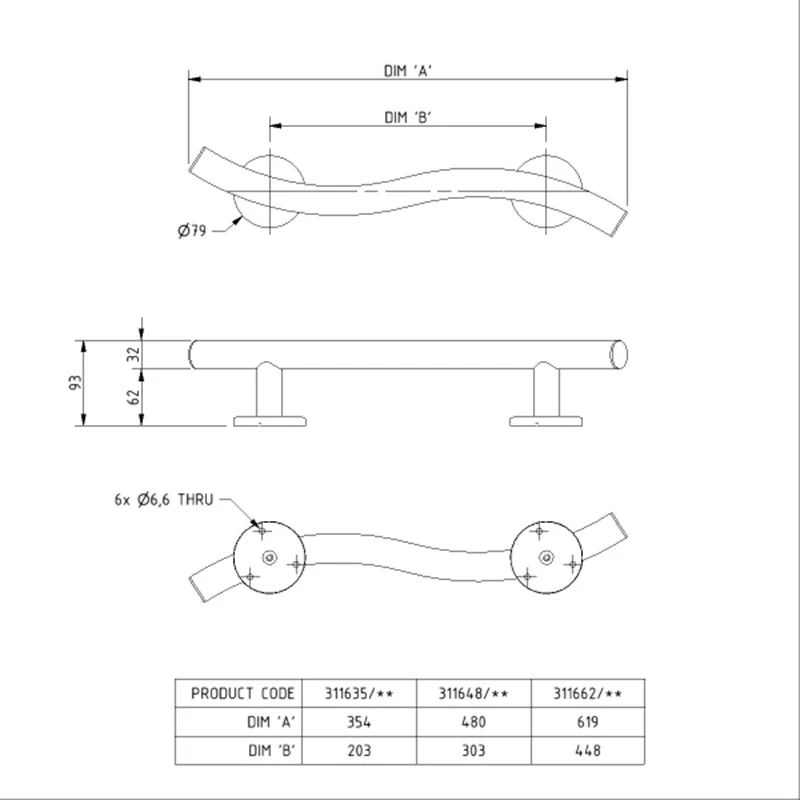Nyma Style Luxury Curved Grab Rail With Concealed Fixings- 620mm – Polished Stainless Steel – 311662/SP