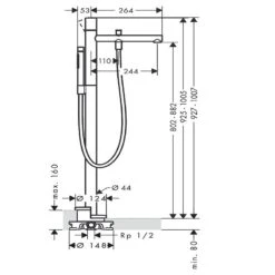 AXOR Uno Single Lever Floor Standing Bath Mixer With Loop Handle – Brushed Nickel – 38442820
