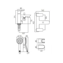 Vado Phase 2 Hole Bath Shower Mixer Single Lever Deck Mounted With Shower Kit – PHA-130+K-C/P
