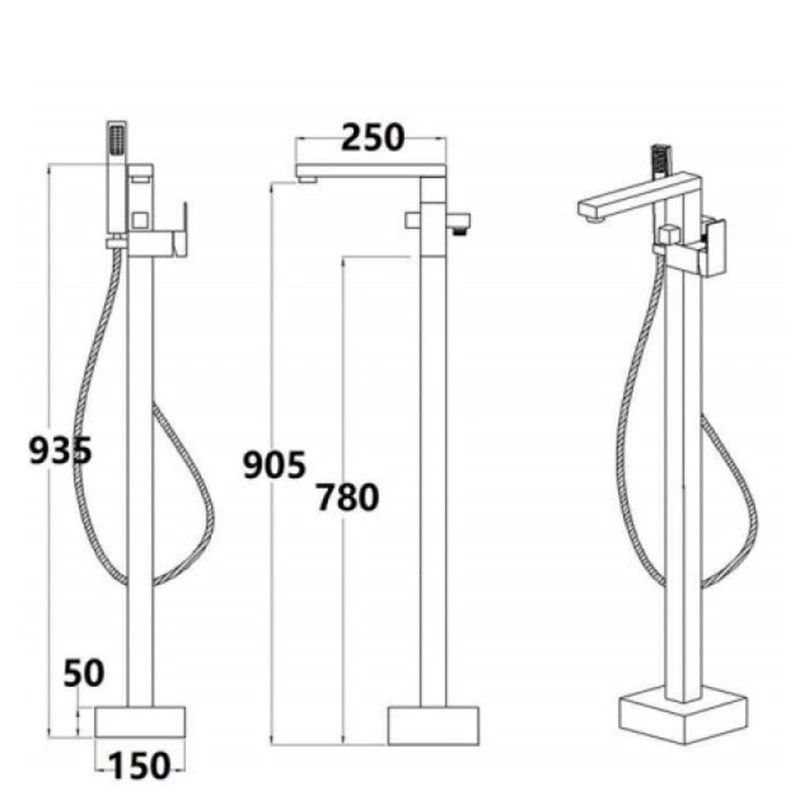 RAK Cubis Free standing Bath Shower Mixer Tap – Chrome – Details