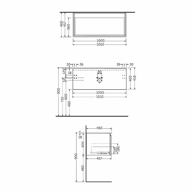 Rak Joy Uno Wall Hung Vanity Unit 100cm – Urban Grey – UNOWH100UGY