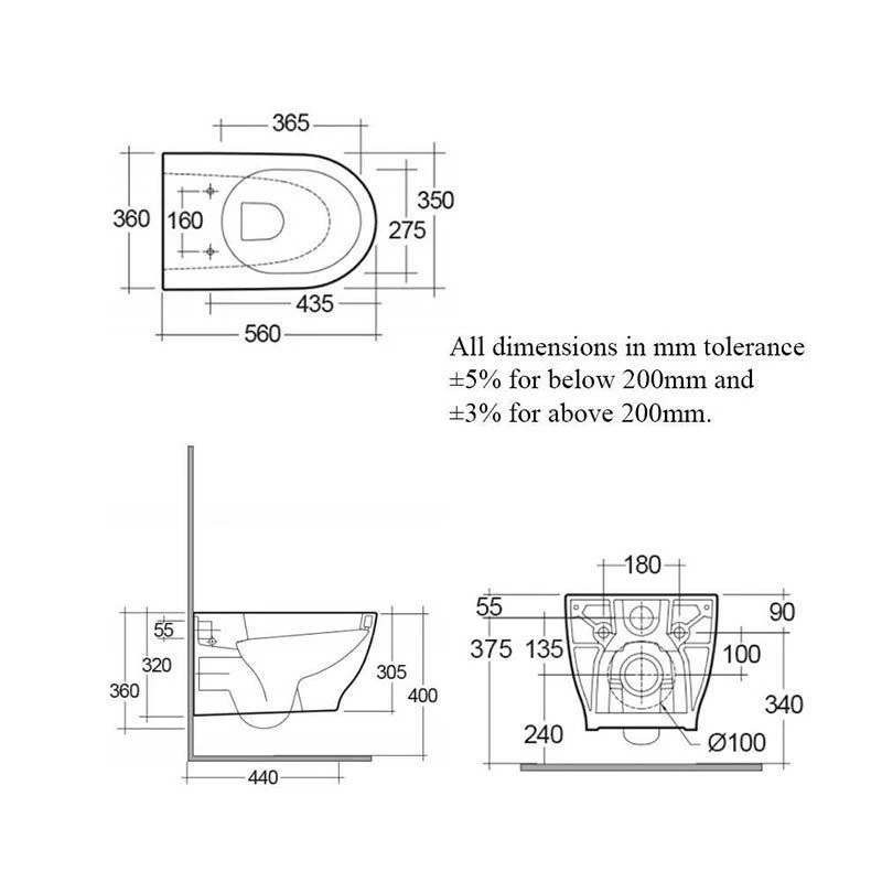 - WC Pan Hole Centres: 160mm