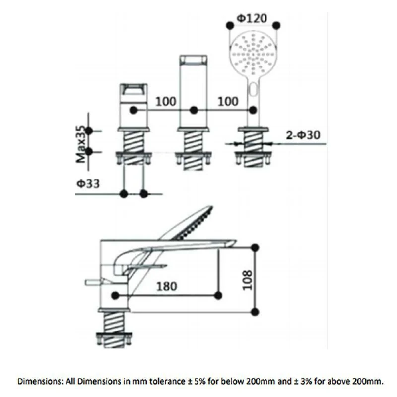 RAK-Sport 3 Hole Deck Mounted Bath Shower Mixer – RAKSPO3012 Details
