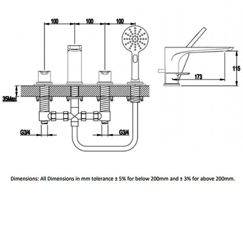 RAK-Sport 4 Hole Deck Mounted Bath Shower Mixer – RAKSPO3013 Details