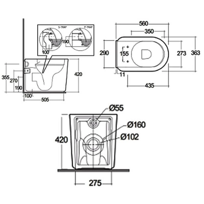RAK Ceramics Valet Rimless Back to Wall Pan – Gloss White – VALWC1347AWHA – Details
