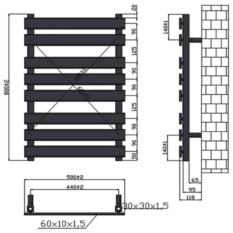 The Towel radiator is constructed from steel. The towel rail is supplied with all the necessary fixtures and fittings, adhering to British standard specifications. It meets the rigorous standards of BS EN 442 and has been safety tested at 13 bar pressure, exceeding the typical household pressure of well under 5 bar.