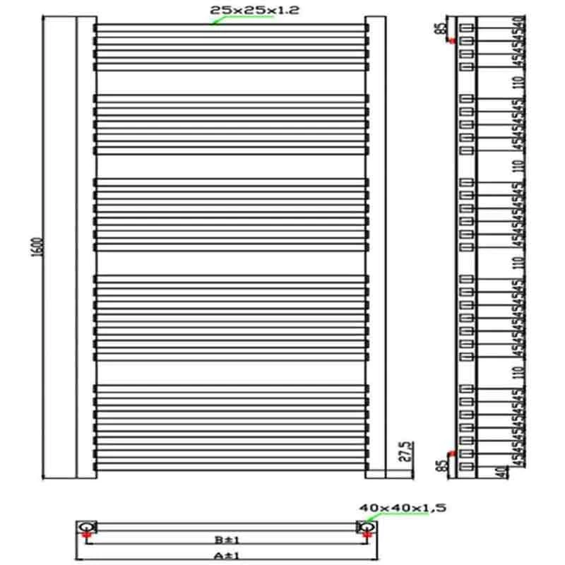 Towelrads Square Tube Straight Hot Water Towel Rail 1600mm x 600mm – Chrome – 210005