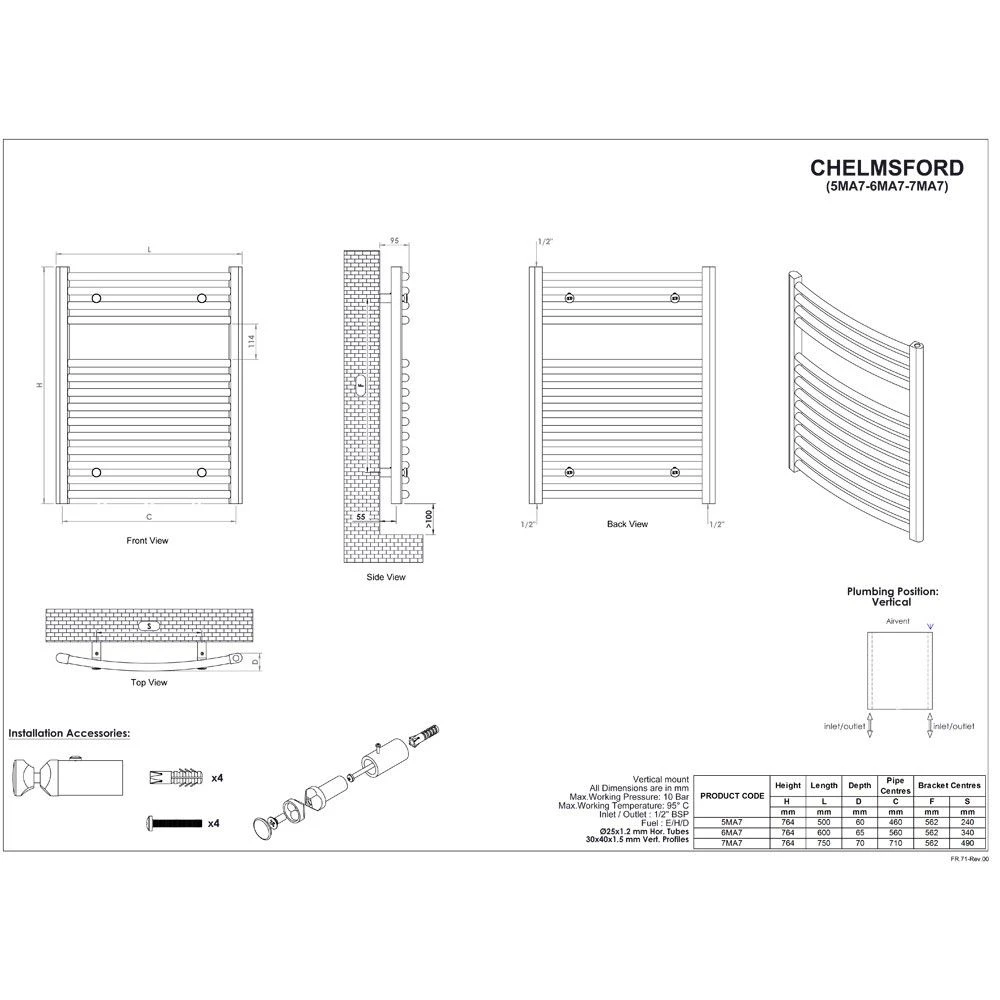 Ultraheat Chelmsford Arched Towel Radiator 764x750mm – Chrome – 7MA7C Details