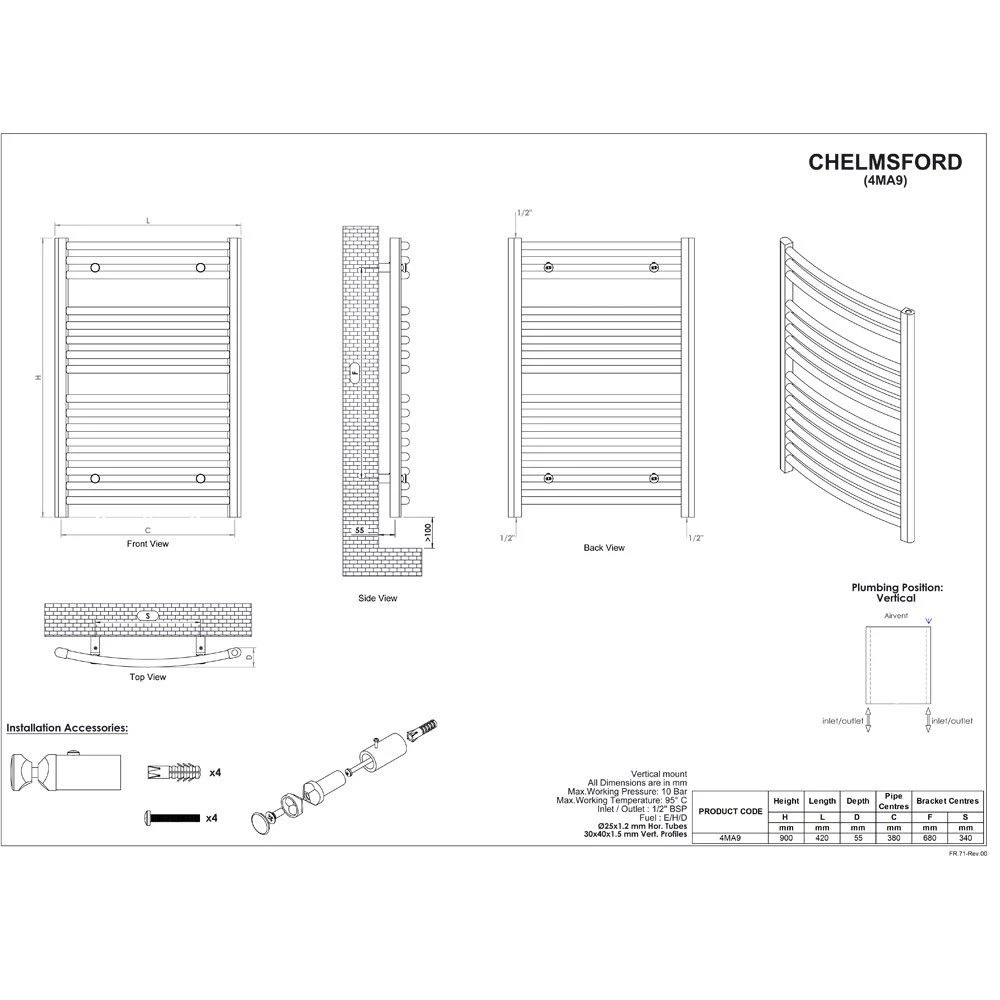 Ultraheat Chelmsford Arched Towel Radiator 900x420mm – White – 4MA9W Details