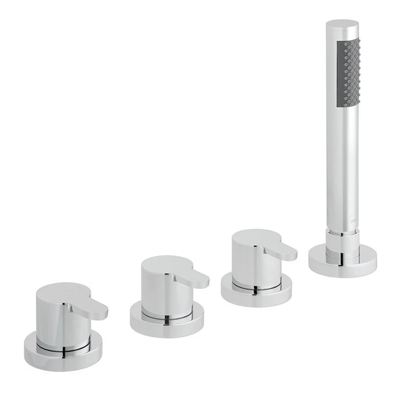 The Vado Sense 4 hole bath/shower mixer is finished in an eye catching chrome. This mixer is supplied with three controls and a hand shower protected by a 15 year guarantee from the manufacturer. This mixer is only compatible with a deck mounted installation. The mixer is supplied without a spout and can only be used with a bath filler waste and overflow.