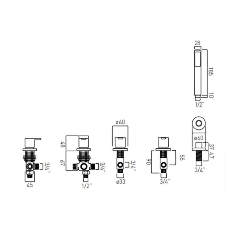 Vado Sense 4 Hole Bath Shower Mixer Deck Mounted Without Spout For Use With Bath Filler Waste And Overflow – Chrome – Details